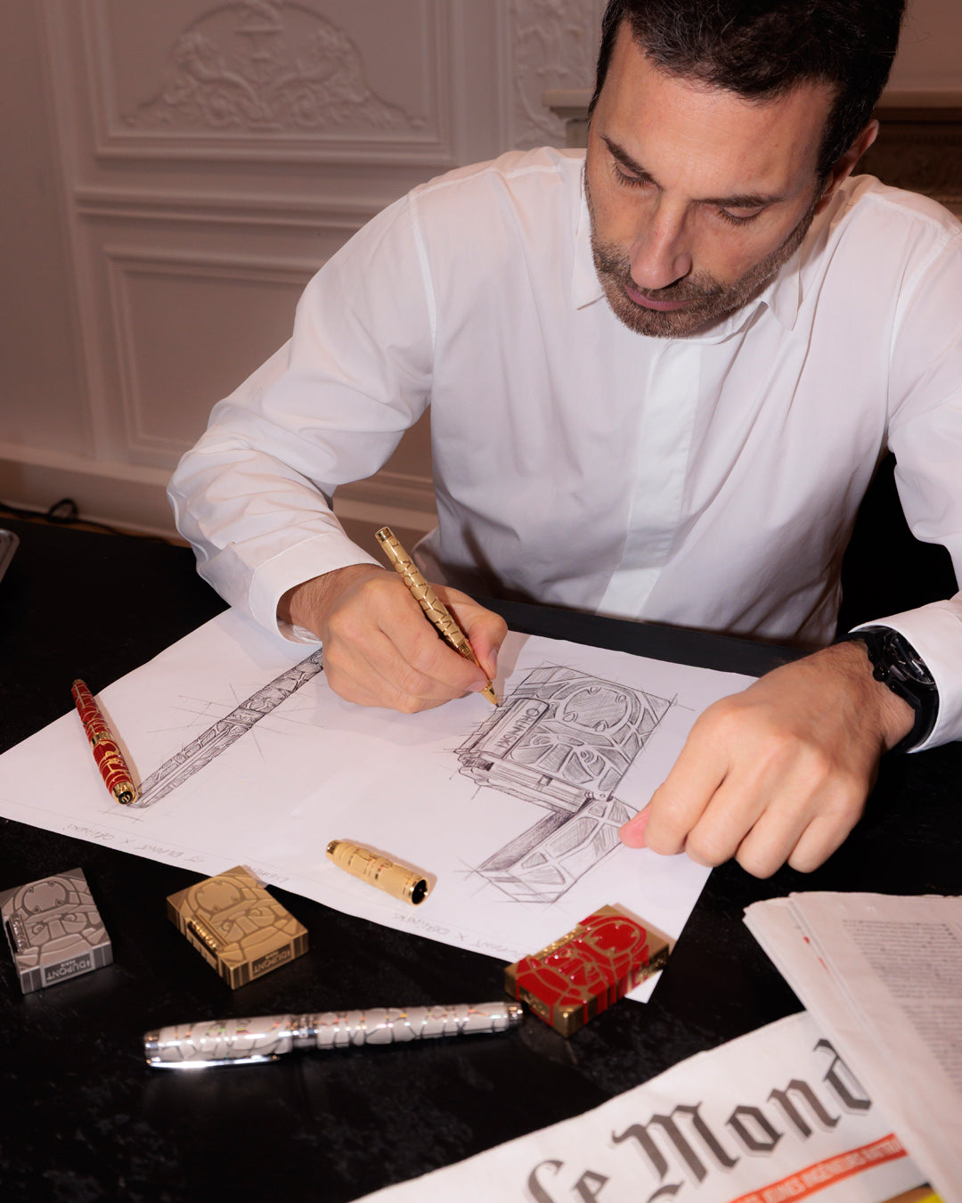 La herencia se enciende en una colección audazmente contemporánea. Vibrante, colorida e impregnada del estilo del artista, esta línea reinventa las convenciones a la vez que preserva la elegancia atemporal de la Maison, continuando la tradición de colaboraciones artísticas emblemáticas que han forjado la historia de ST Dupont.