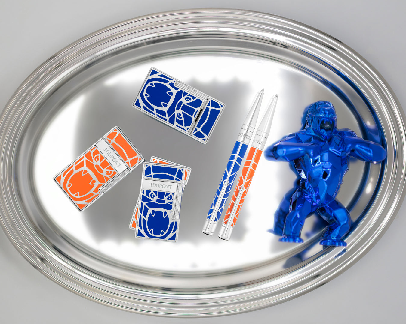 Con esta colección, ST Dupont y Richard Orlinski reinventan los iconos de la Maison: el encendedor Ligne 2 y el instrumento de escritura Line D Eternity, además de los bolígrafos Biggy, Slimmy y Initial. Cada pieza se impregna del lenguaje artístico de Richard Orlinski, convirtiéndose en una obra de arte por sí misma.